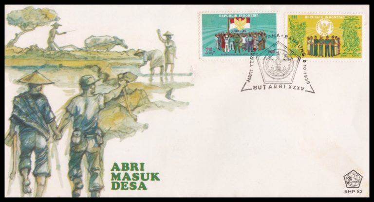Postkarte „Die Armee betritt das Dorf“ aus der Zeit der ‚Neuen Ordnung‘ unter Präsident Suharto © Colum Graham