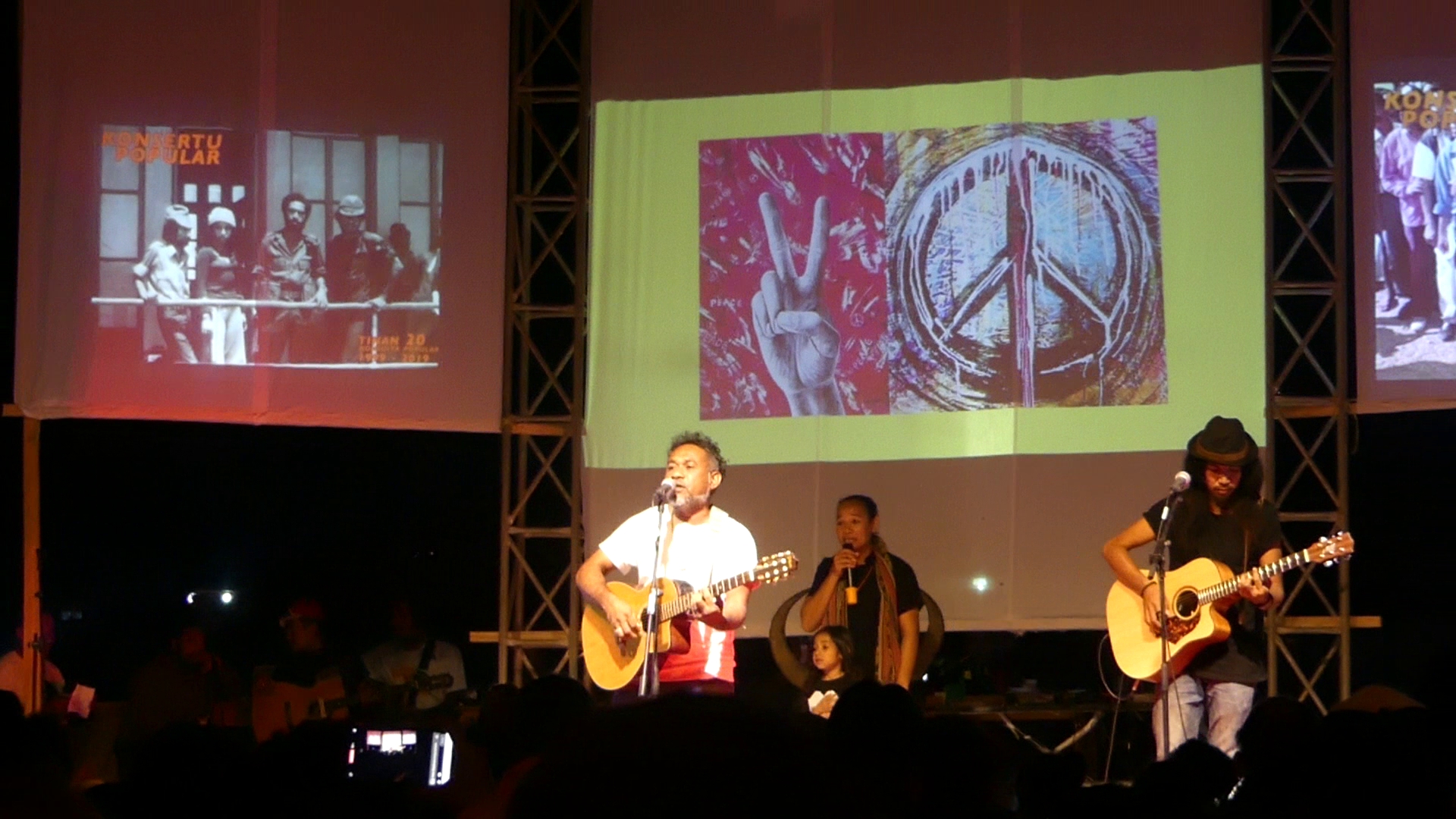 Joviana Guterres bei einem Auftritt beim Konsertu Populár des Solidarity Festivals am 29. August 2019 in Dili. Das Lied beschreibt die Sehnsucht eines Kindes, das während der Besatzungszeit (1975 – 1999) gewaltsam nach Indonesien verschleppt wurde, nach Hause zu kommen. Joviana arbeitet bei Ajar Timor-Leste, einer Menschenrechtsorganisation, die sich zusammen mit Assosiasaun Chega Ba Ita (ACbit) um Familienzusammenführung bemüht.