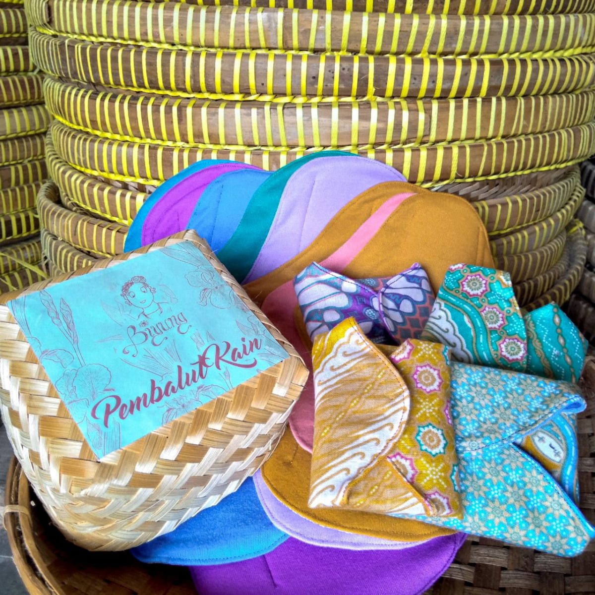 Indonesien: Aktivist*innen aus Yogyakarta klären über die Gefahren von Plastik und Chemikalien in Menstruationsbinden auf und werben für waschbare Stoffbinden. In Workshops geben sie ihr Wissen an Frauen weiter und nähen mit ihnen gemeinsam farbenfrohe und umweltfreundliche Alternativen zu herkömmlichen Einwegbinden.