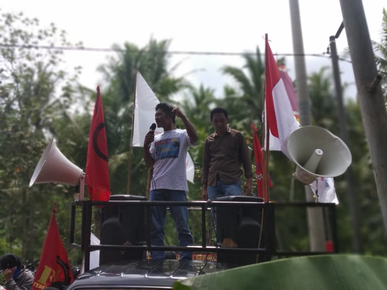 Arbeiter*innen eines Steinbergwerkes im Distrikt Süd Lampung/Indonesien bei der Protestaktion gegen union busting, 2019 © FSBKU